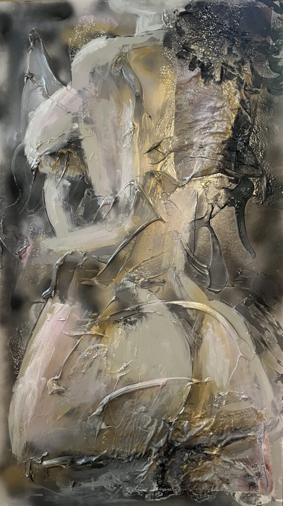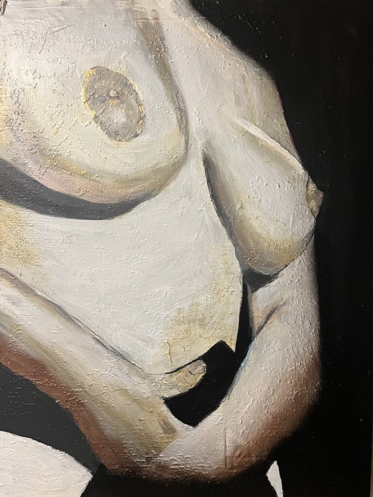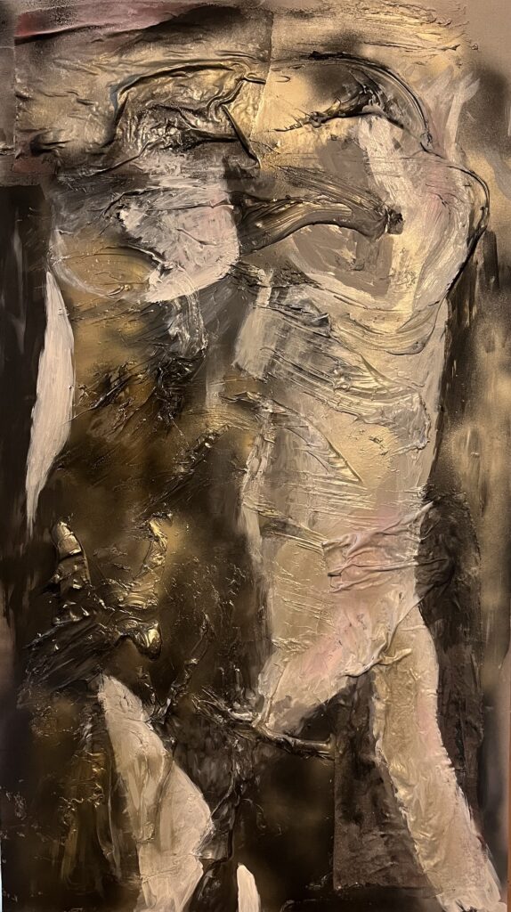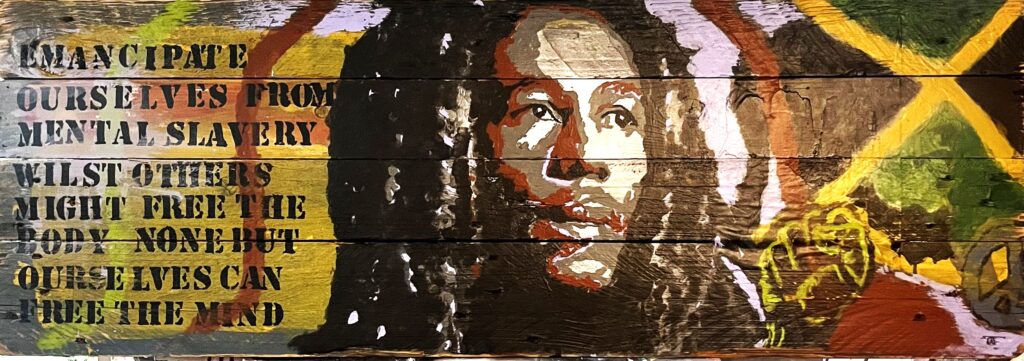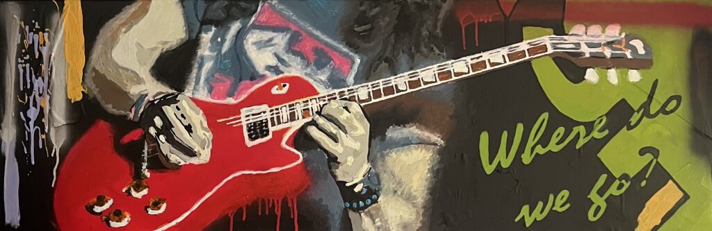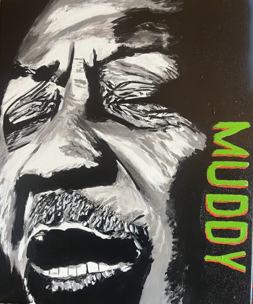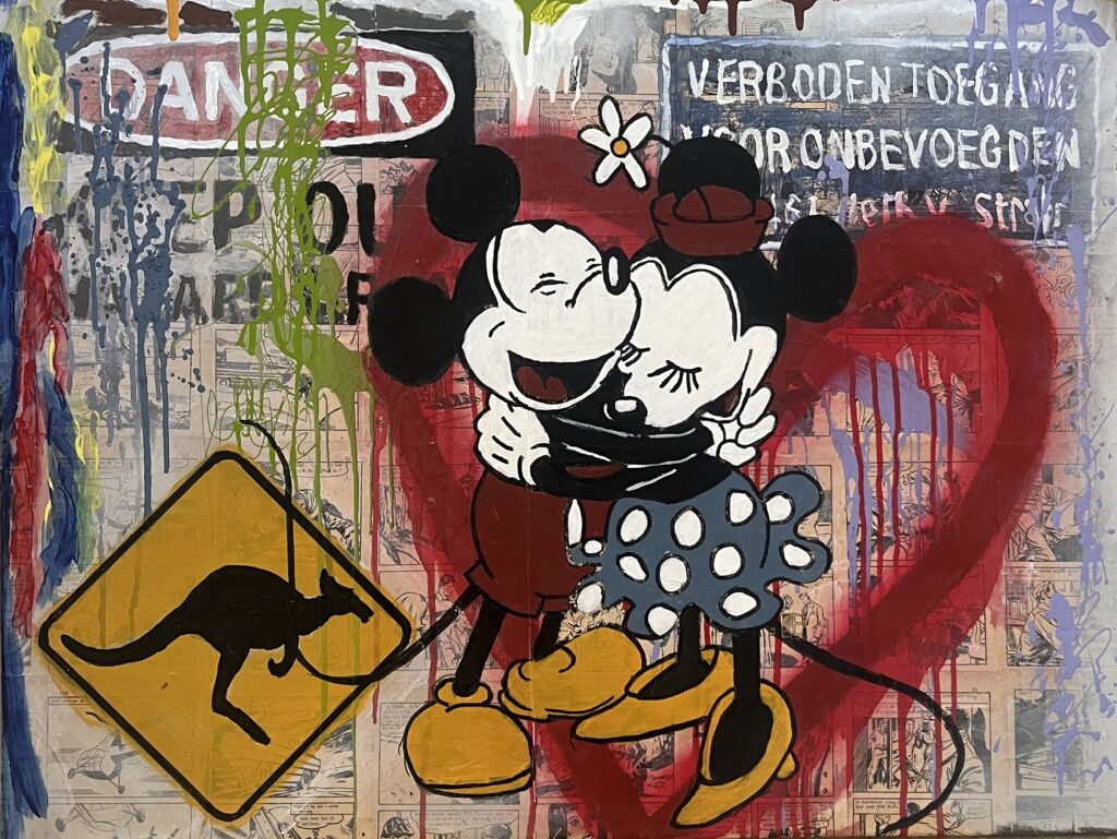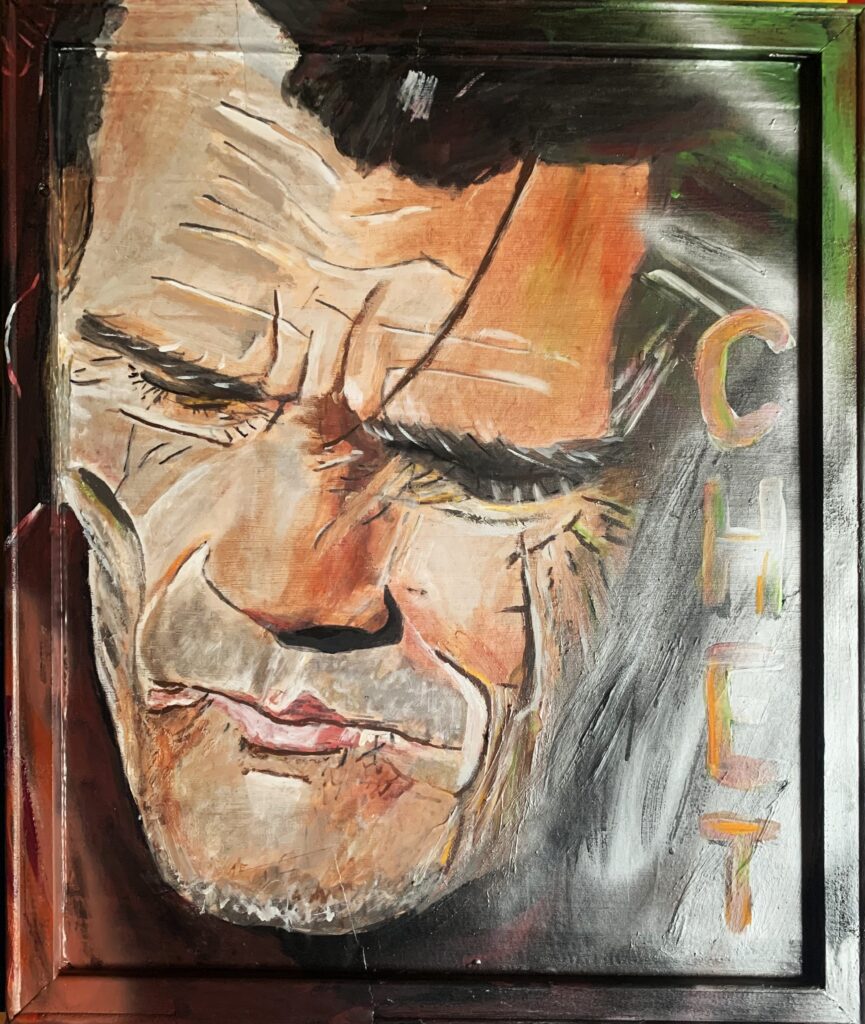 … popidolen, filmsterren, schrijvers en mensen uit mijn omgeving. Ik schilder op doek, hout, karton met spuitbussen, acrylverf, muurverf, meubelverf. Alles kan, zolang het maar imperfect is.