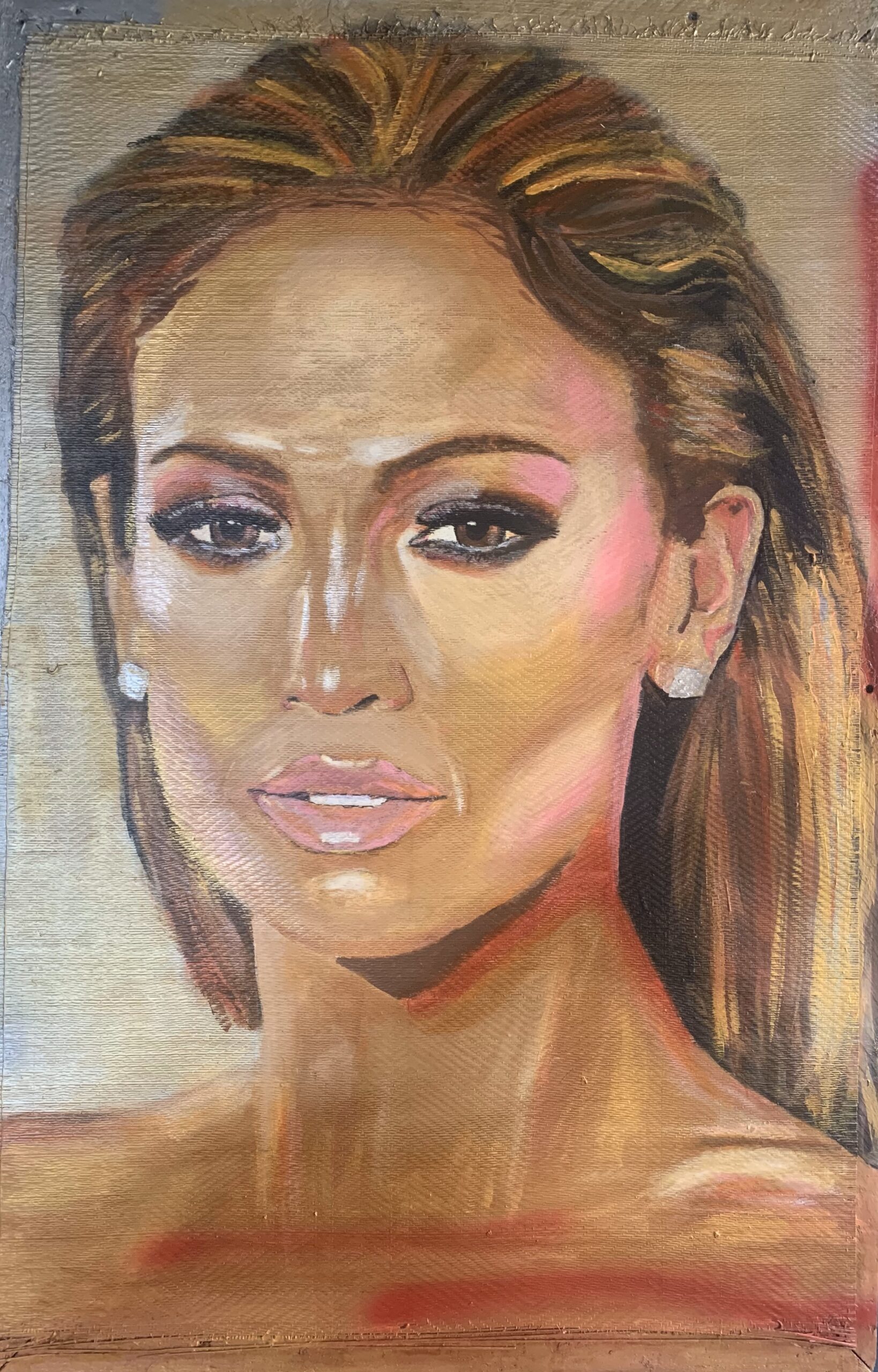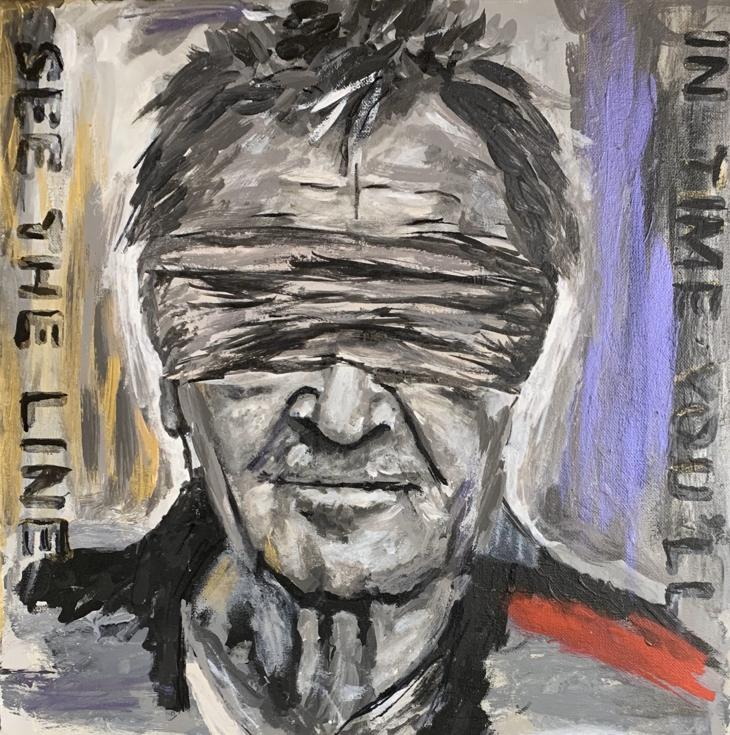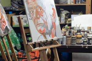 … popidolen, filmsterren, schrijvers en mensen uit mijn omgeving. Ik schilder op doek, hout, karton met spuitbussen, acrylverf, muurverf, meubelverf. Alles kan, zolang het maar imperfect is.